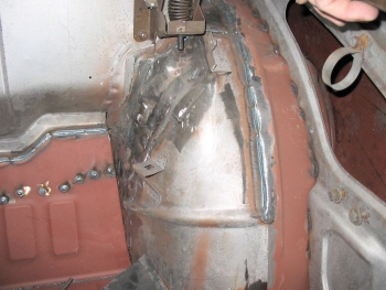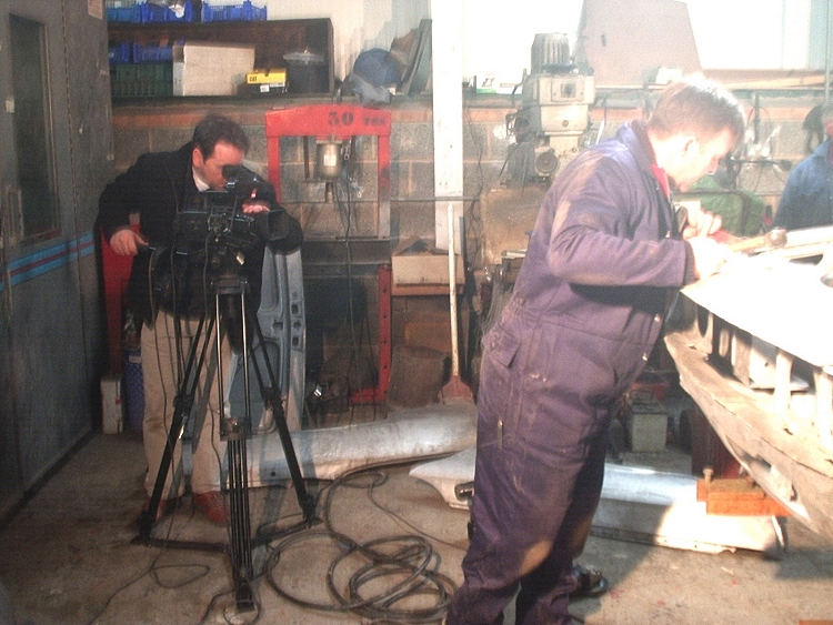 In between visits, work on my car was filmed for use in the Classic Car Restoration Techniques: Bodywork DVD produced by Core Productions and available from EJ Ward. The picture shows Wayne Jones working away whilst being filmed. He has now set up his own mobile welding business, Classic Mobile Welding. |