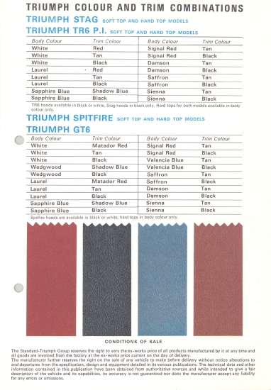 December 1970 Triumph Colour Ranges