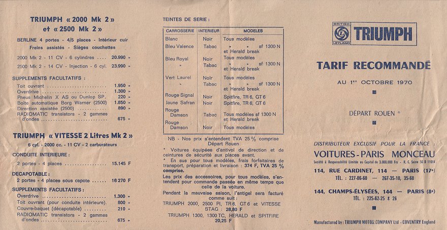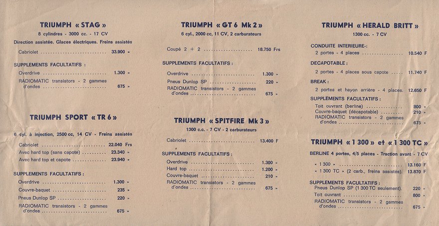 Triumph France Price List