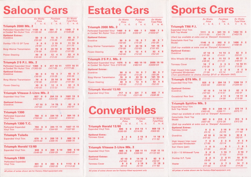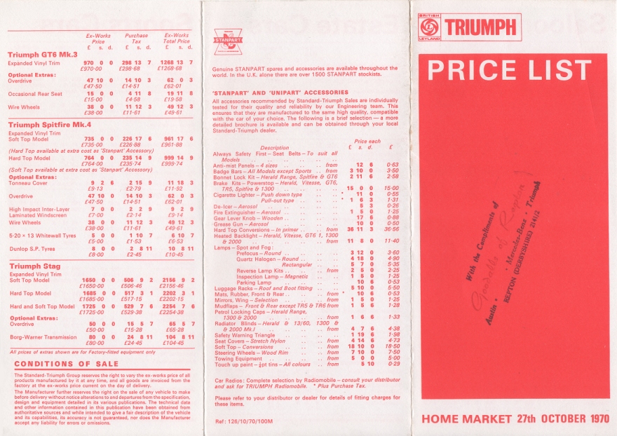 Triumph UK Price List