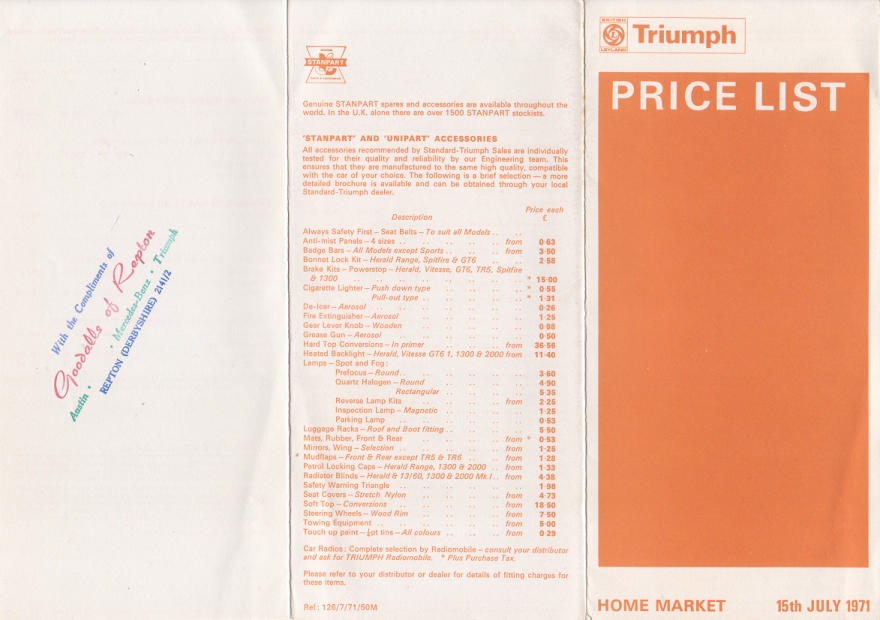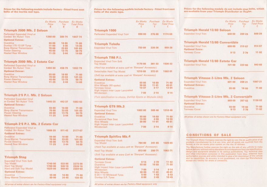 Triumph UK Price List