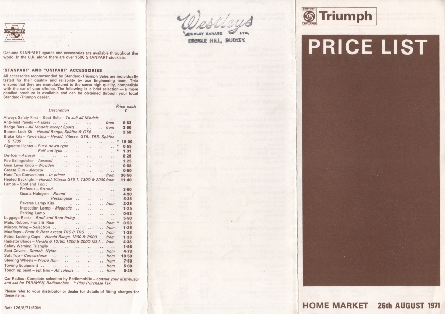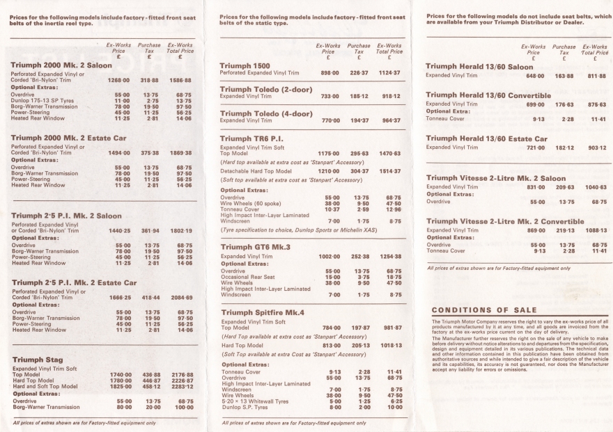Triumph UK Price List