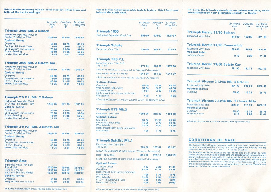 Triumph UK Price List