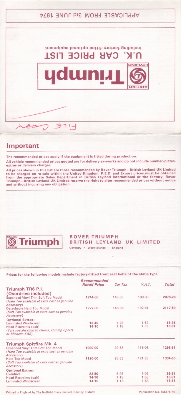 Triumph UK Price List