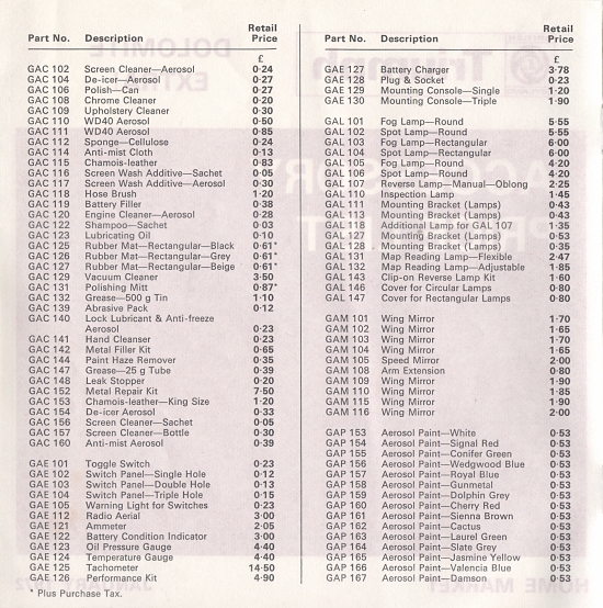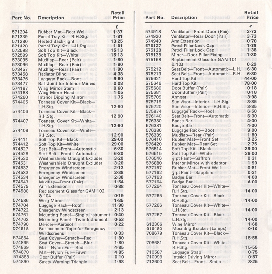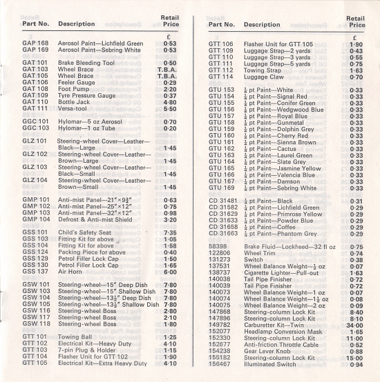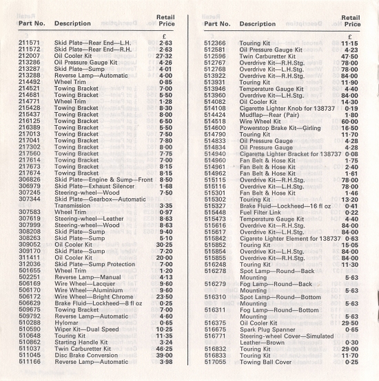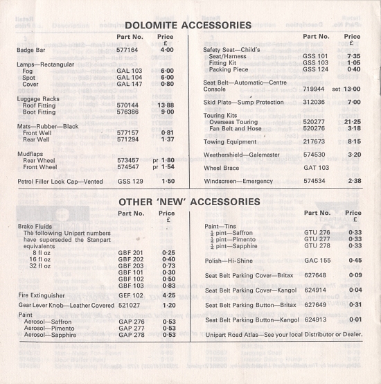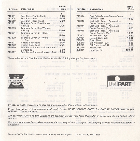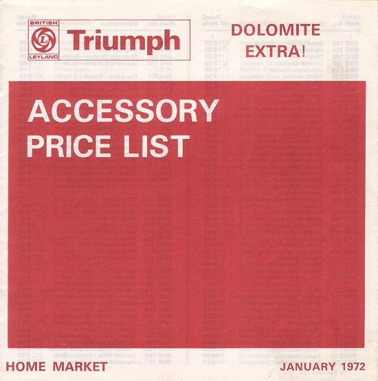 Triumph UK Accessories Price List - January 1972