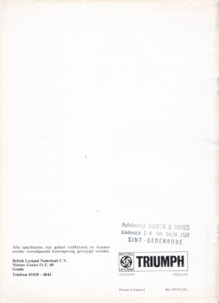 NETHERLANDS 1971 TRIUMPH RANGE BROCHURE
