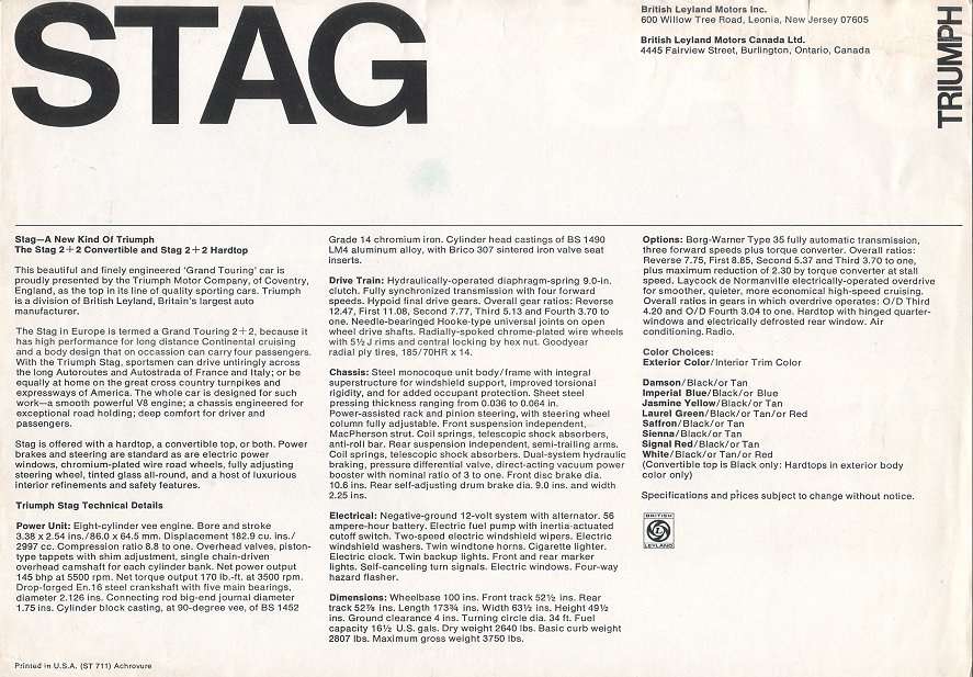1971 TRIUMPH STAG USA BROCHURE